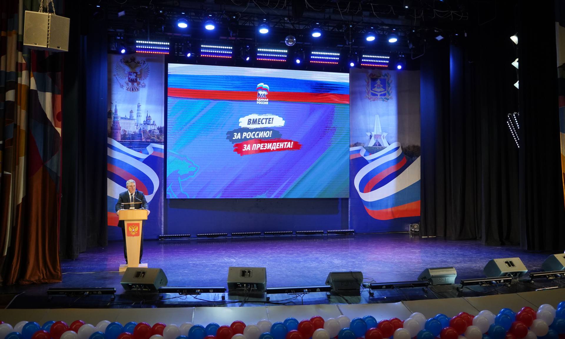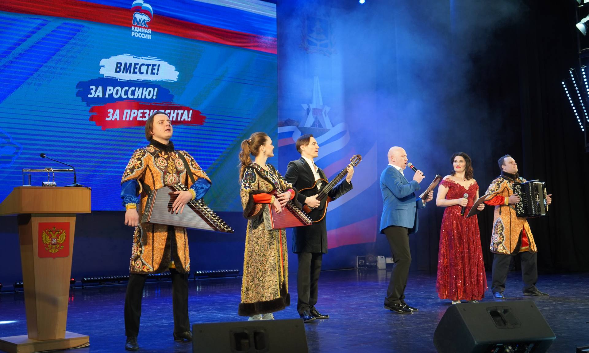 —Уважаемые жители Брянской области, уважаемый Александр Васильевич, спасибо вам, что доверили нам участвовать в таком прекрасном мероприятии. В последний месяц мы проехали по территории новых регионов в составе агитбригады. Сегодня мы уже близки к завершению этого выезда. И сегодняшний концерт будет завершающей красивой точкой. Только за прошлый год агитбригада на территории новых регионов провела 519 мероприятий, а с мероприятиями, проведенными в 2022 и 2024 году — их уже свыше 700.