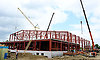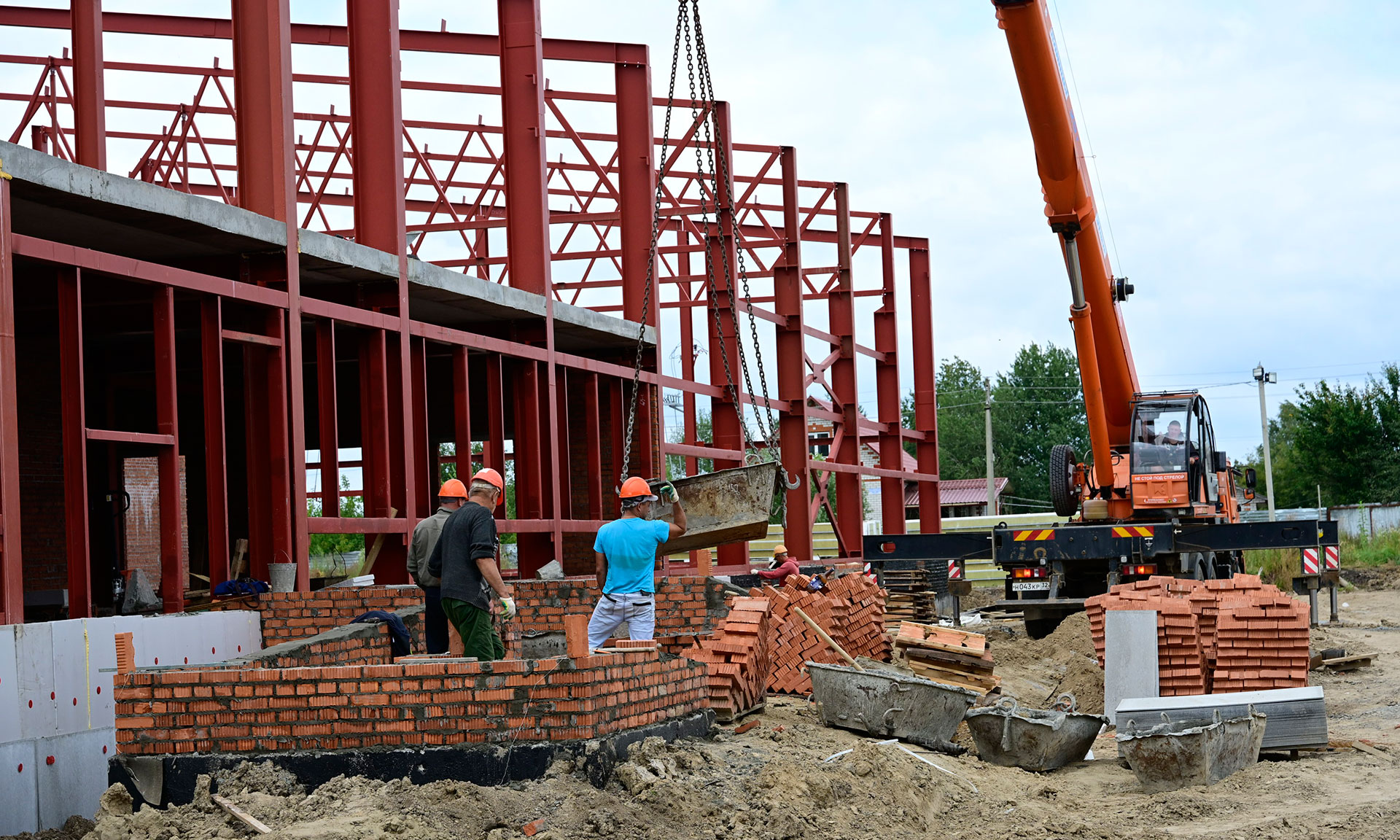 Сейчас ведутся работы по устройству металлического каркаса здания, установке колонн, панелей перекрытия, отоплению — котельная уже есть. Закуплен весь необходимый материал — металл, сэндвич-панели, монтаж начнется со следующей недели. Пока позволяет погода, строители приступят к благоустройству территории.