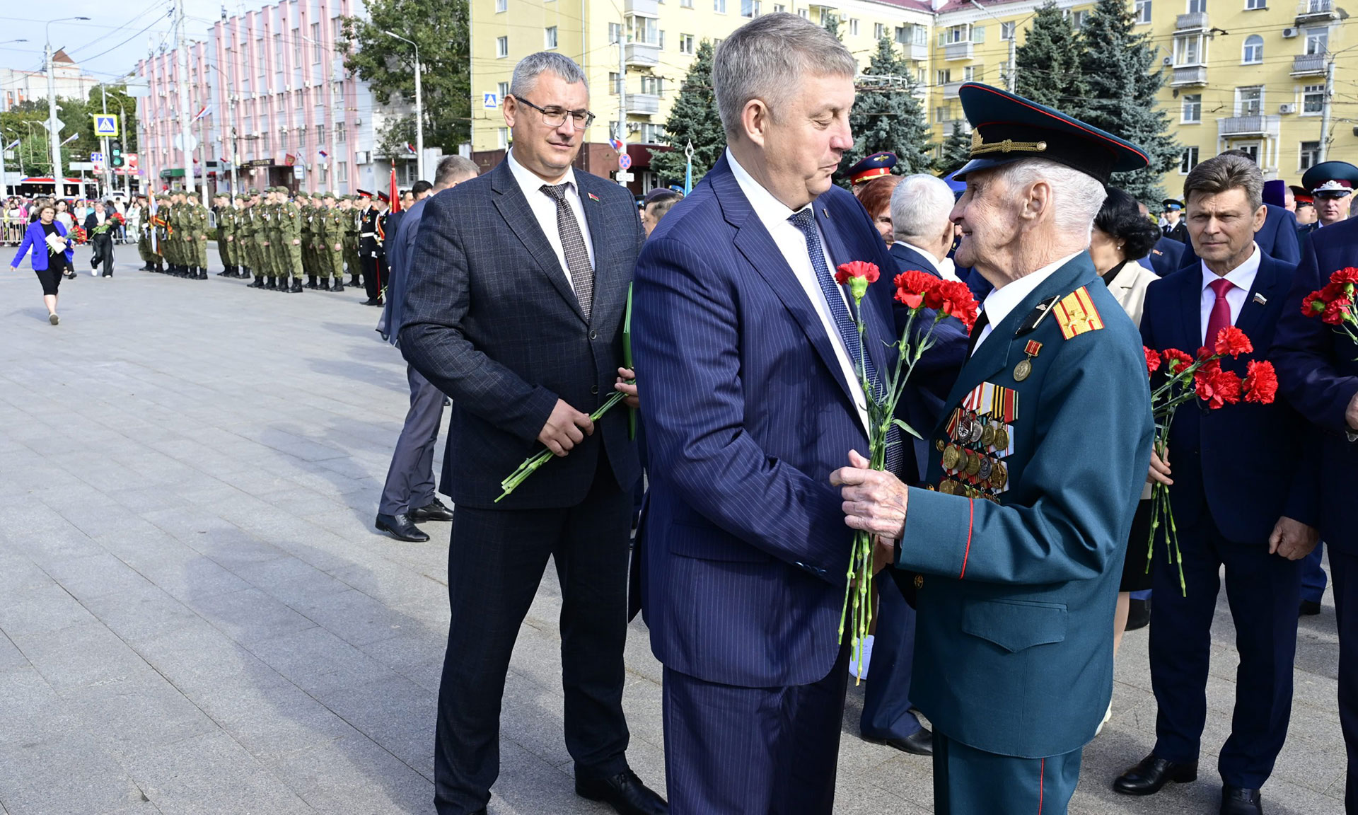 — Уважаемые жители Брянска! 102-й год я шагаю по родной земле и рад, что сегодня присутствую на этом торжественном мероприятии, посвященном 82-й годовщине освобождения Брянщины от немецко-фашистских захватчиков! От имени ваших предков, от ветеранов Великой Отечественной войны я приветствую вас и поздравляю с этим важным событием!