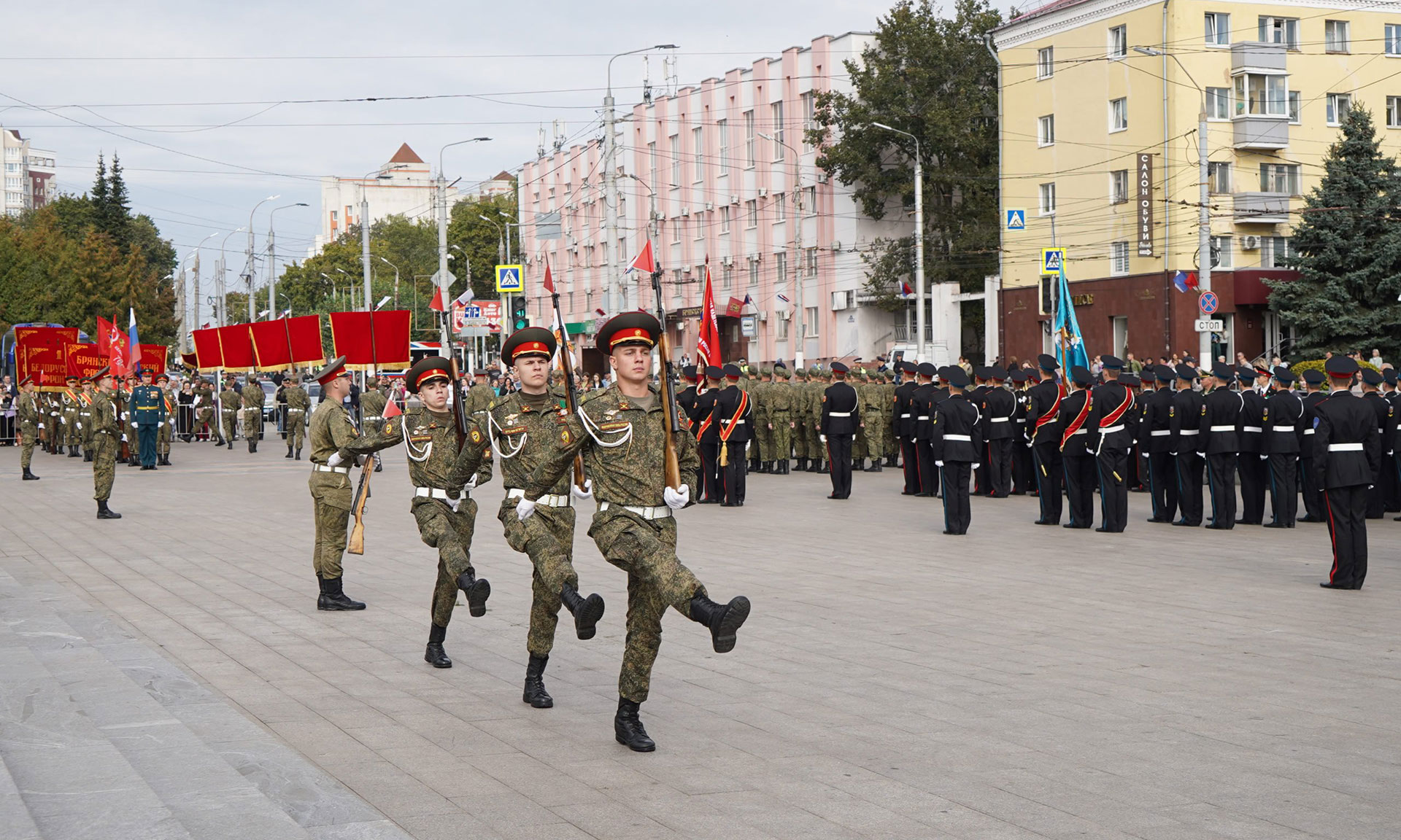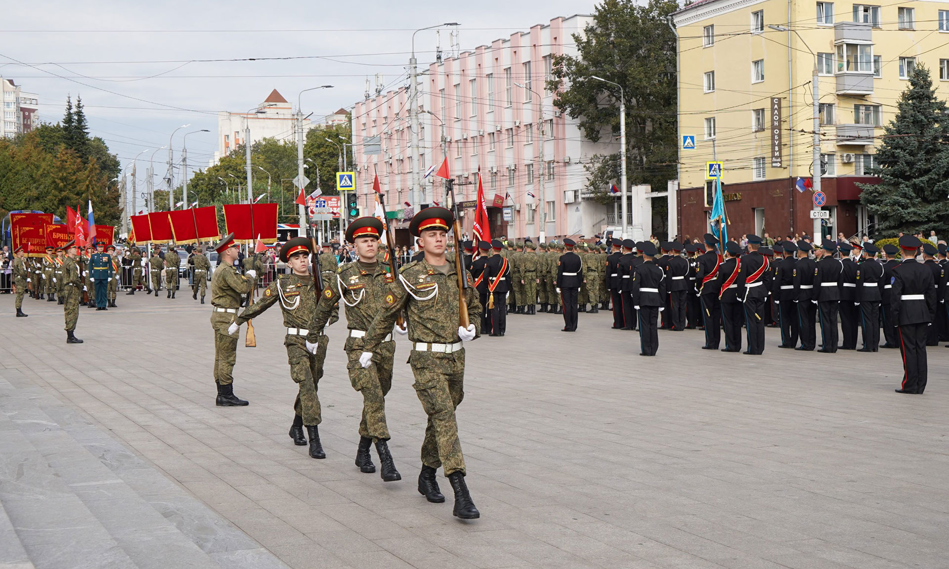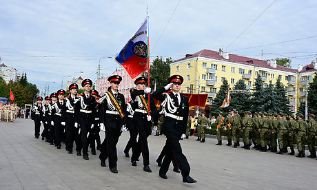 Состоялся торжественный марш в честь 82-й годовщины освобождения Брянщины от немецко-фашистских захватчиков. Открыла марш знаменная группа военного учебного центра при Брянском государственном инженерно-технологическом университете.