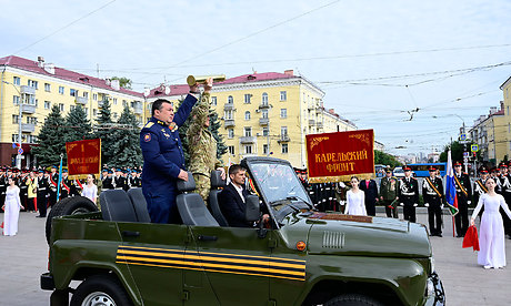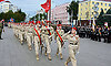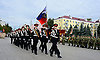Торжественным маршем прошли кадеты Клинцовской кадетской школы «Юный спасатель» имени героя Советского Союза С. И. Постевого, коробки юнармейцев, сводный военный духовой оркестр Брянской области.