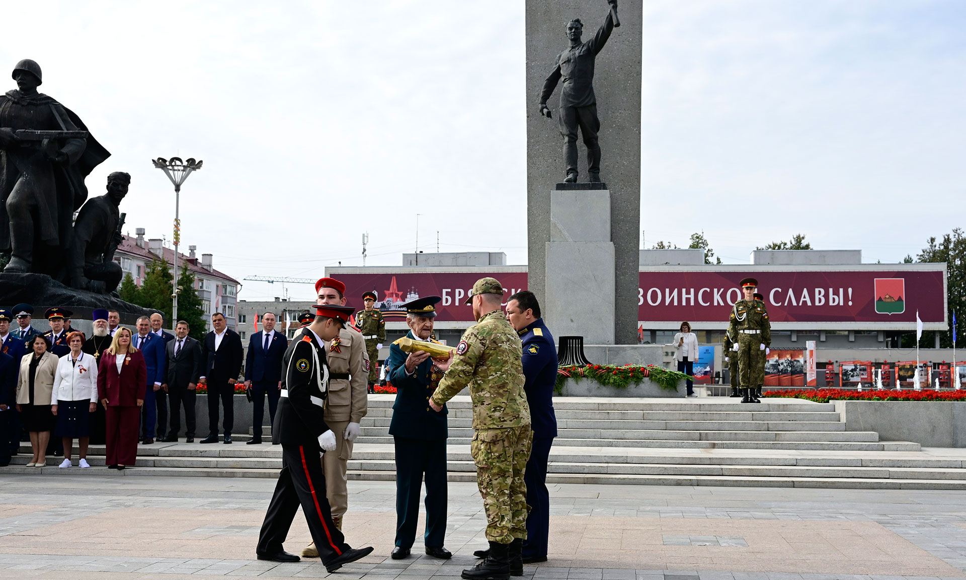В день 82-й годовщины освобождения Брянщины от немецко-фашистских захватчиков и 1040-летию образования города Брянска состоялась торжественная церемония передачи земли, привезенной с памятных мест муниципальных образований Брянской области, от ветеранов Великой Отечественной войны участникам специальной военной операции в рамках акции «Сила земли».